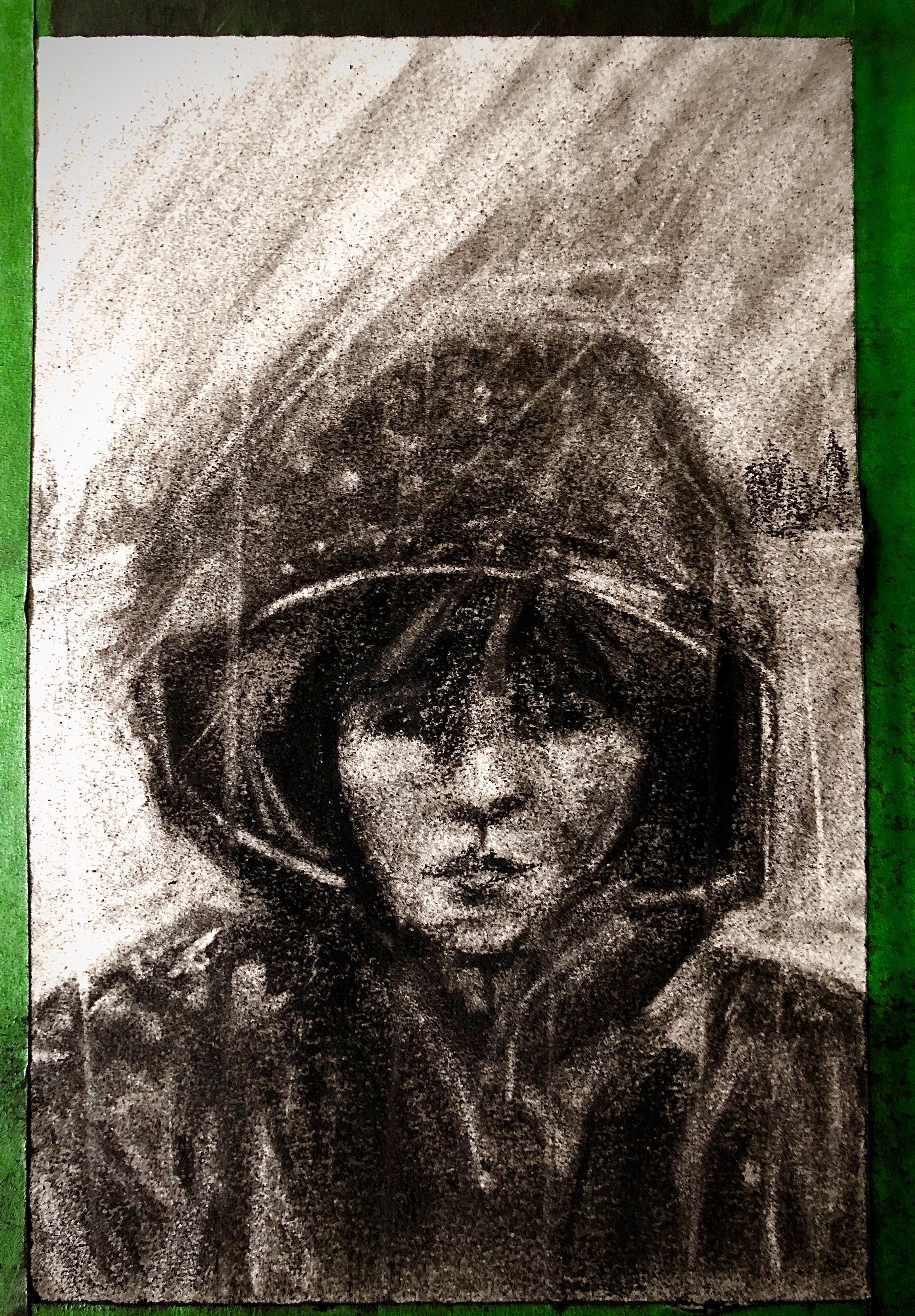 This is one of my favourite images of my parents that was taken in 1959 while they walked down the streets of Edmonton. This cyanotype piece was started by applying light-senstive solution to handmade clay tiles in my darkroom. It was then exposed to sunlight and washed for several days leaving blue and white images on the clay.